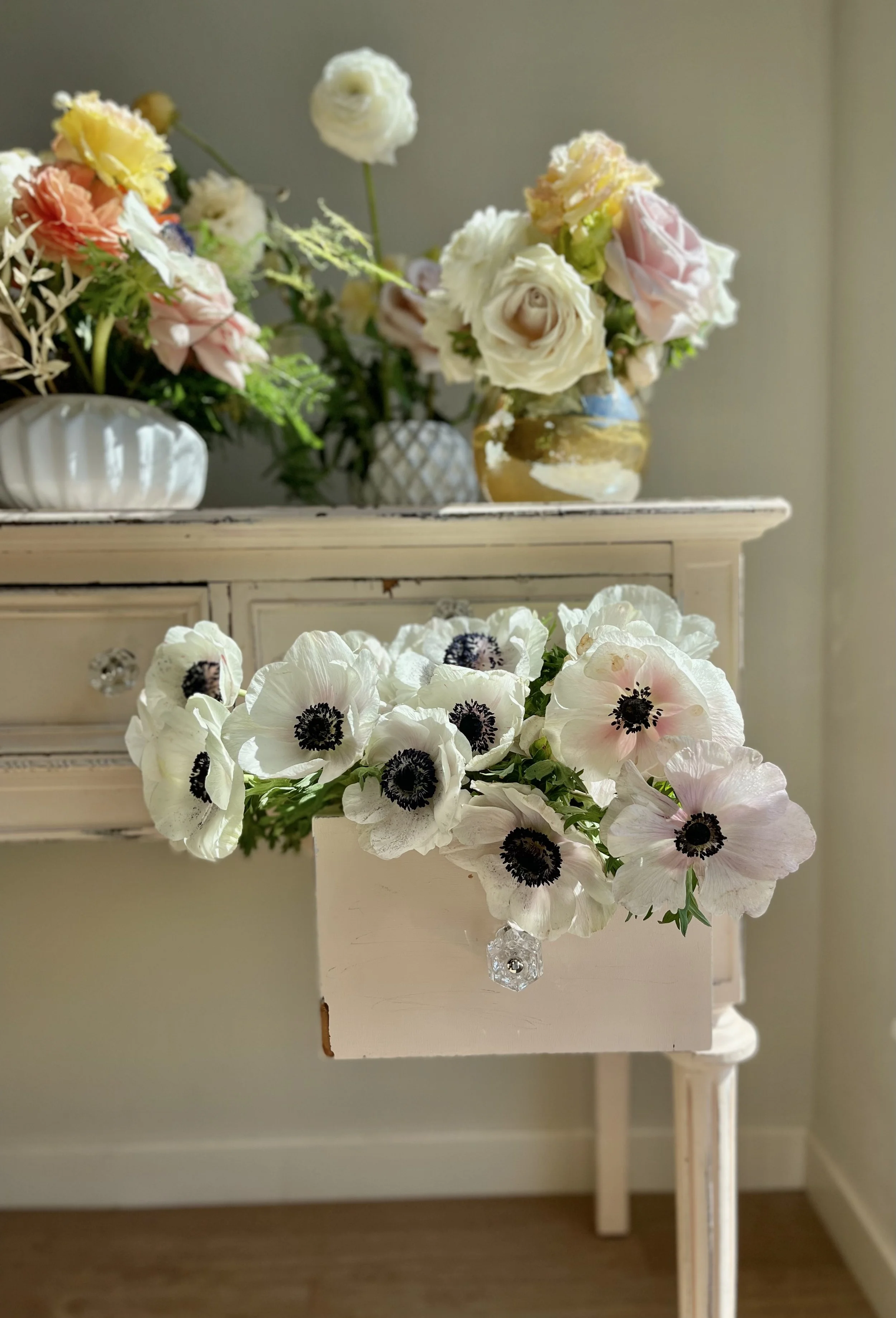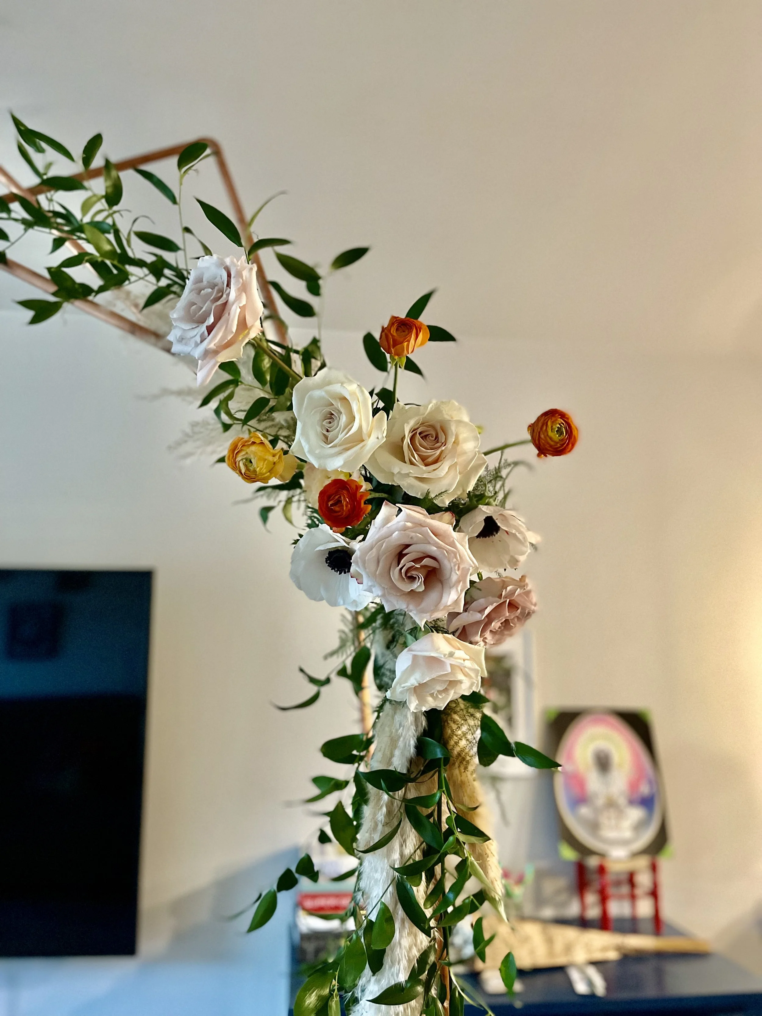 I draw inspiration from texture, architecture, and seasonality, creating florals that feel alive within their space rather than simply placed there. From delicate bridal bouquets to large-scale installations and ceremony arches, my approach is intentional and artful — translating emotion into color, shape, and scent.
